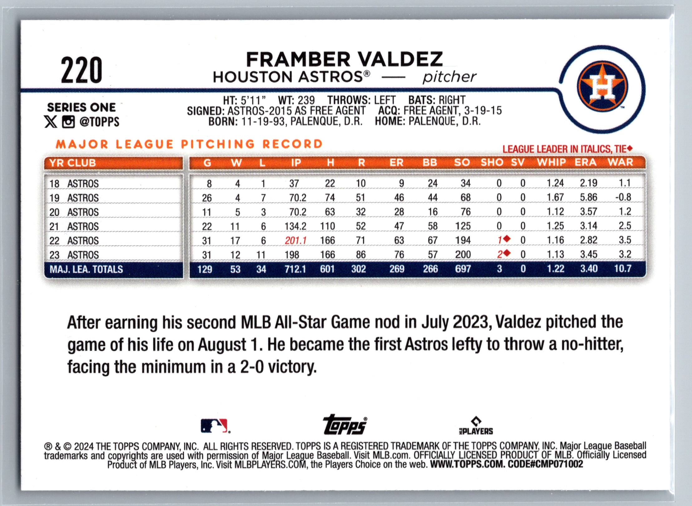 Also there is an odd Framber Valdez card in this pull which is super shiny, but has no serial numbering. I could not find the exact parallel this is.