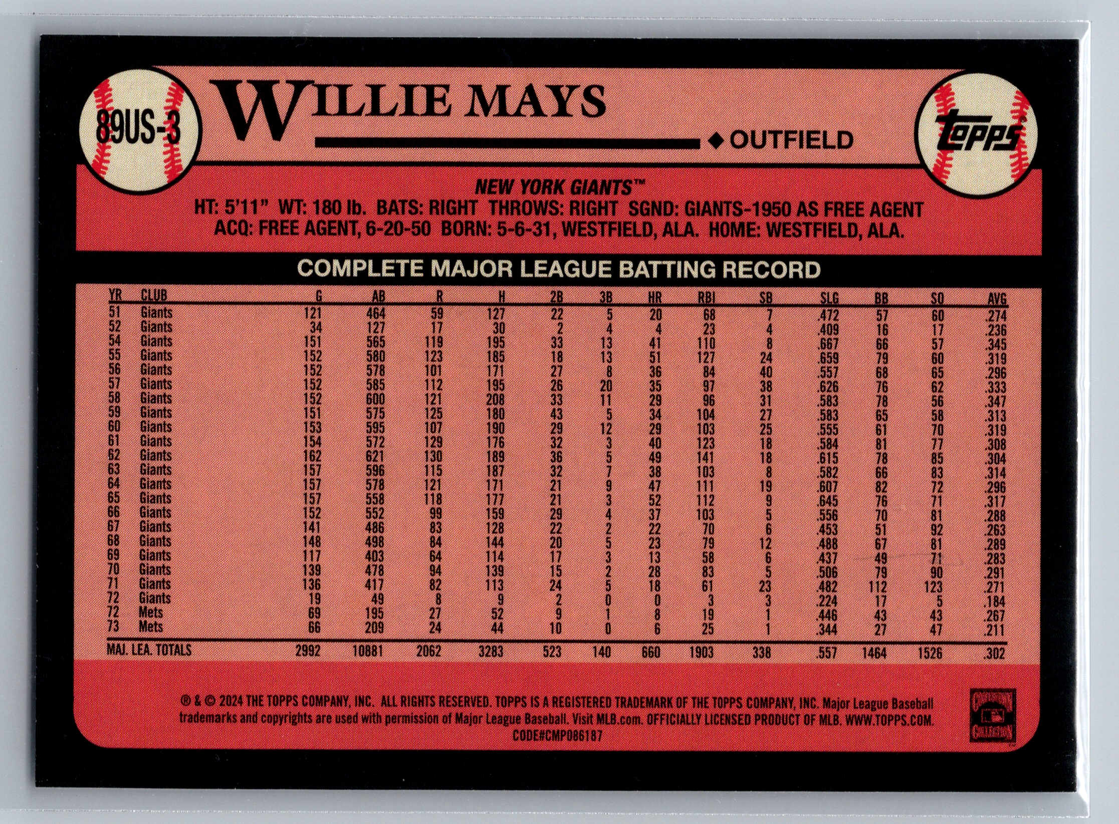 The highlight for me are the 1989 35th Anniversary Willie Mays card pulled from the 2024 Topps Update. As someone who is stepping a toe into vintage, this was the best of both worlds, one of the best baseball players of all time, in the 1989 Topps format! Just an incredible card that dropped my jaw when I pulled the card from the pack during the game.