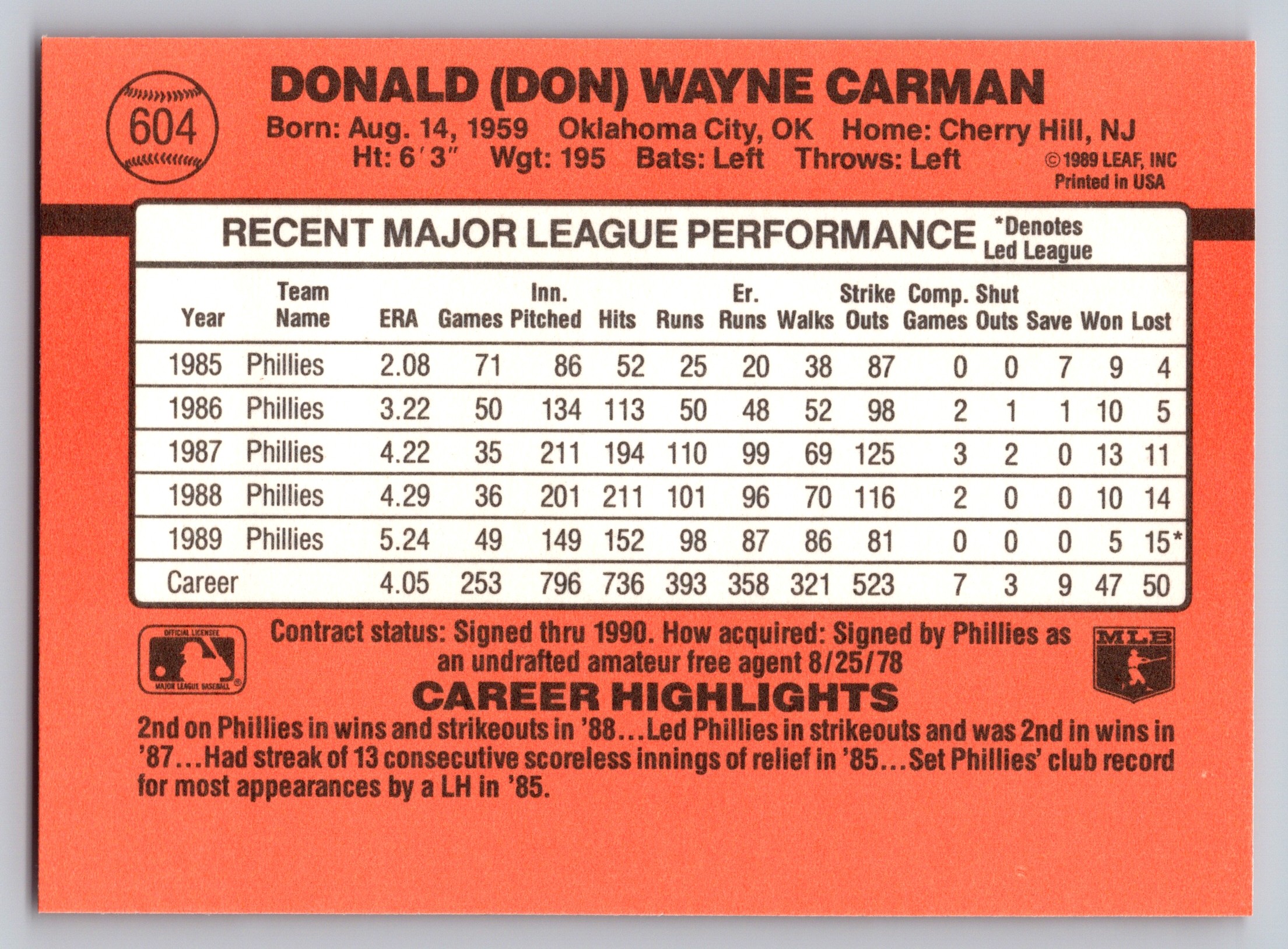 - Don Carman – Phillies card!