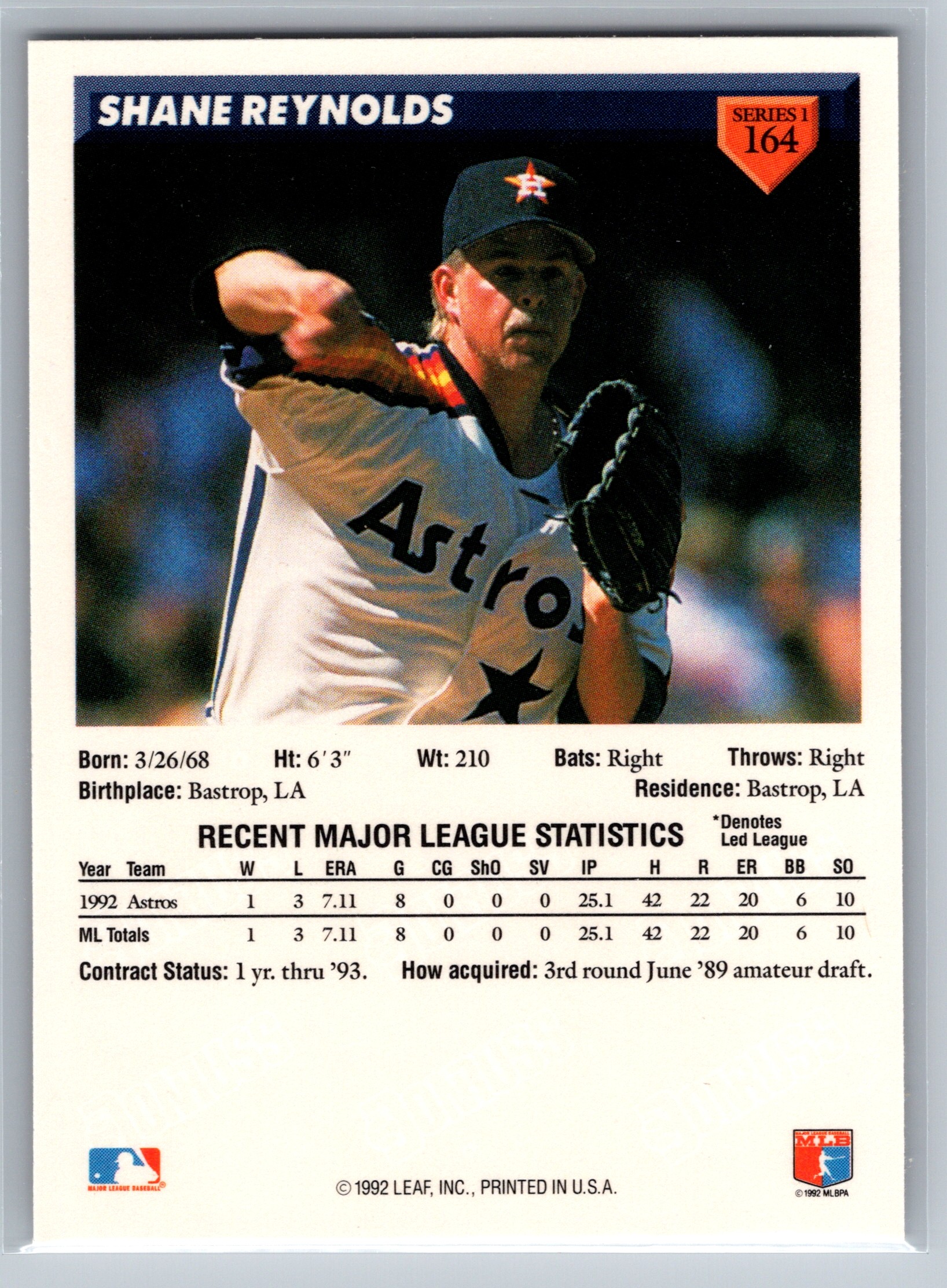 - Shane Reynolds – oldest looking rookie ever on the back of the card