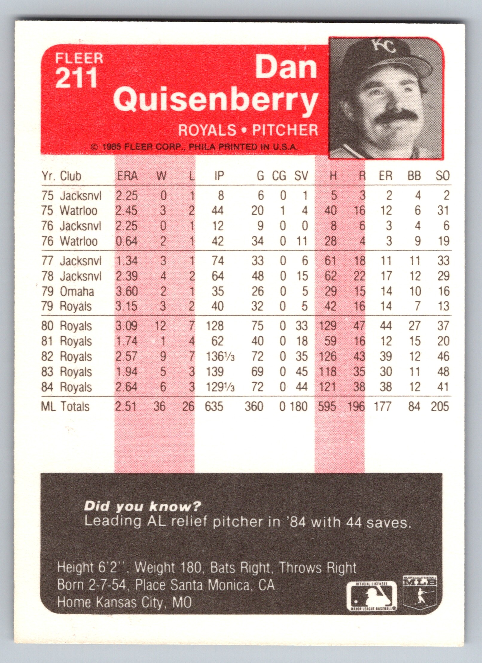 - 1985 Fleer – Dan Quisenberry