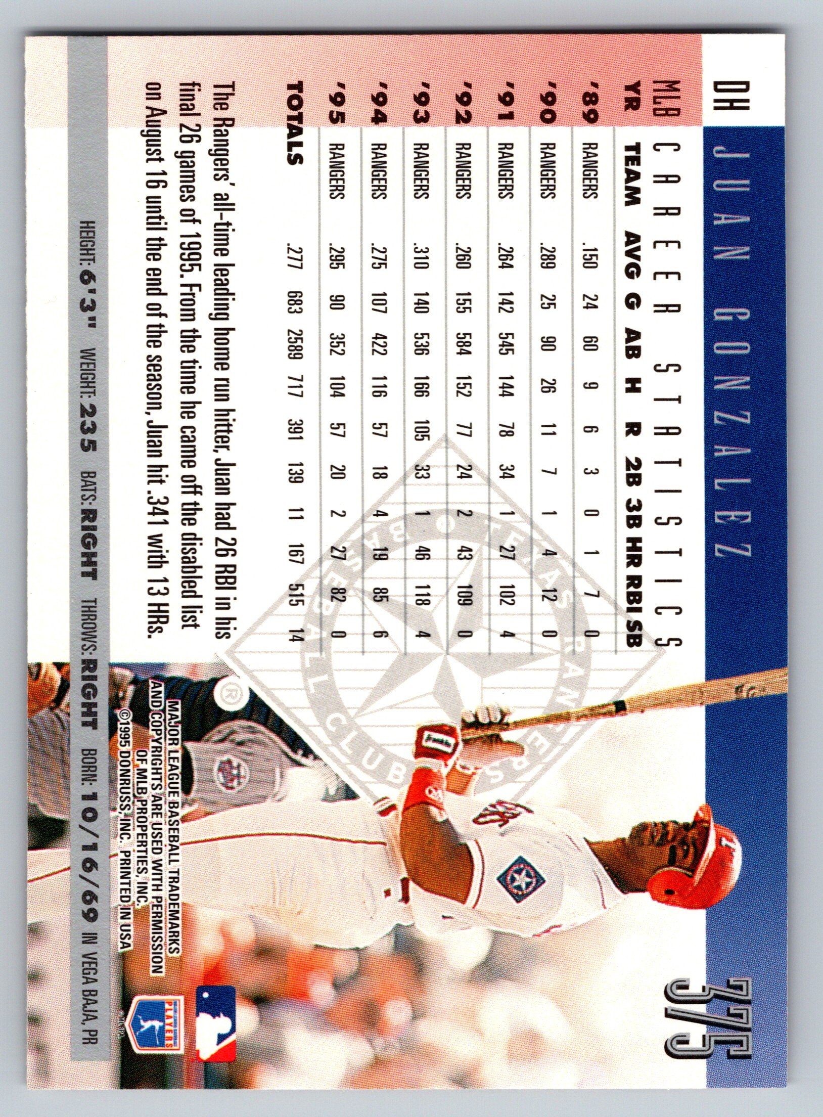- 1996 Donruss – Juan Gonzales – the card is not a patch, but a holographic block that the scanner has trouble picking up