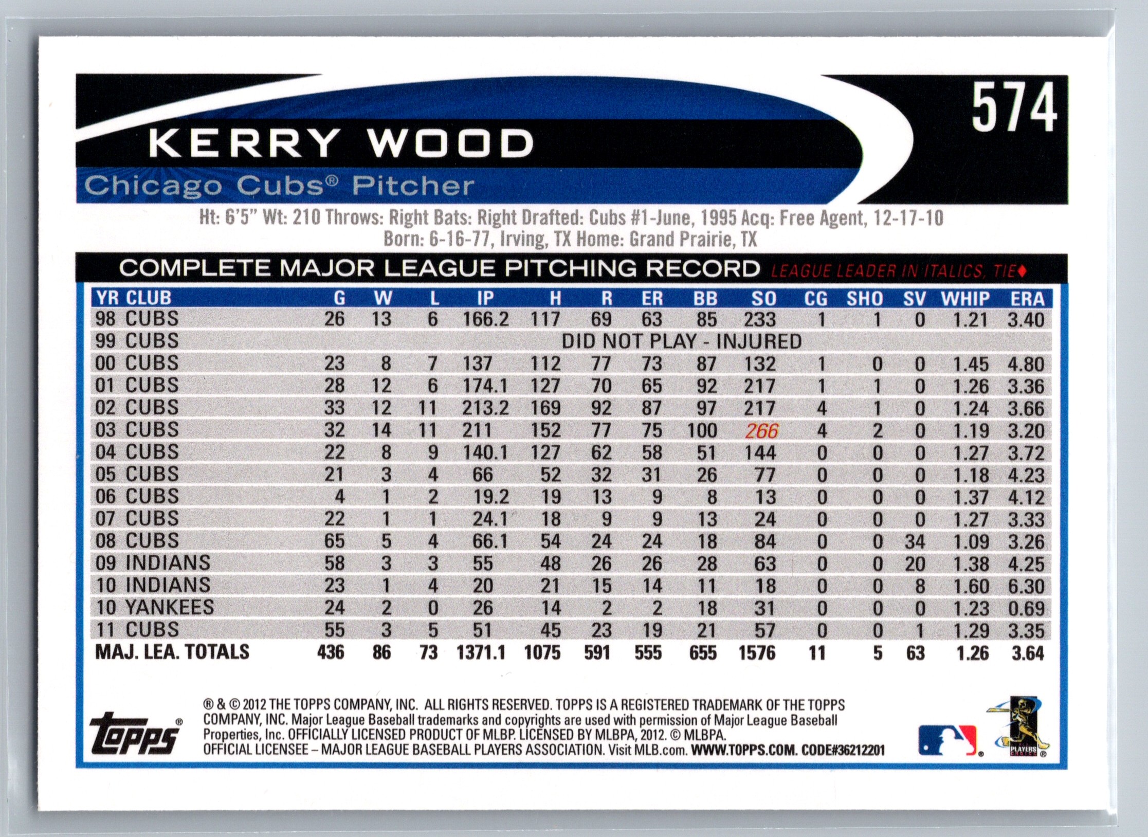 - 2012 Topps – Kerry Wood