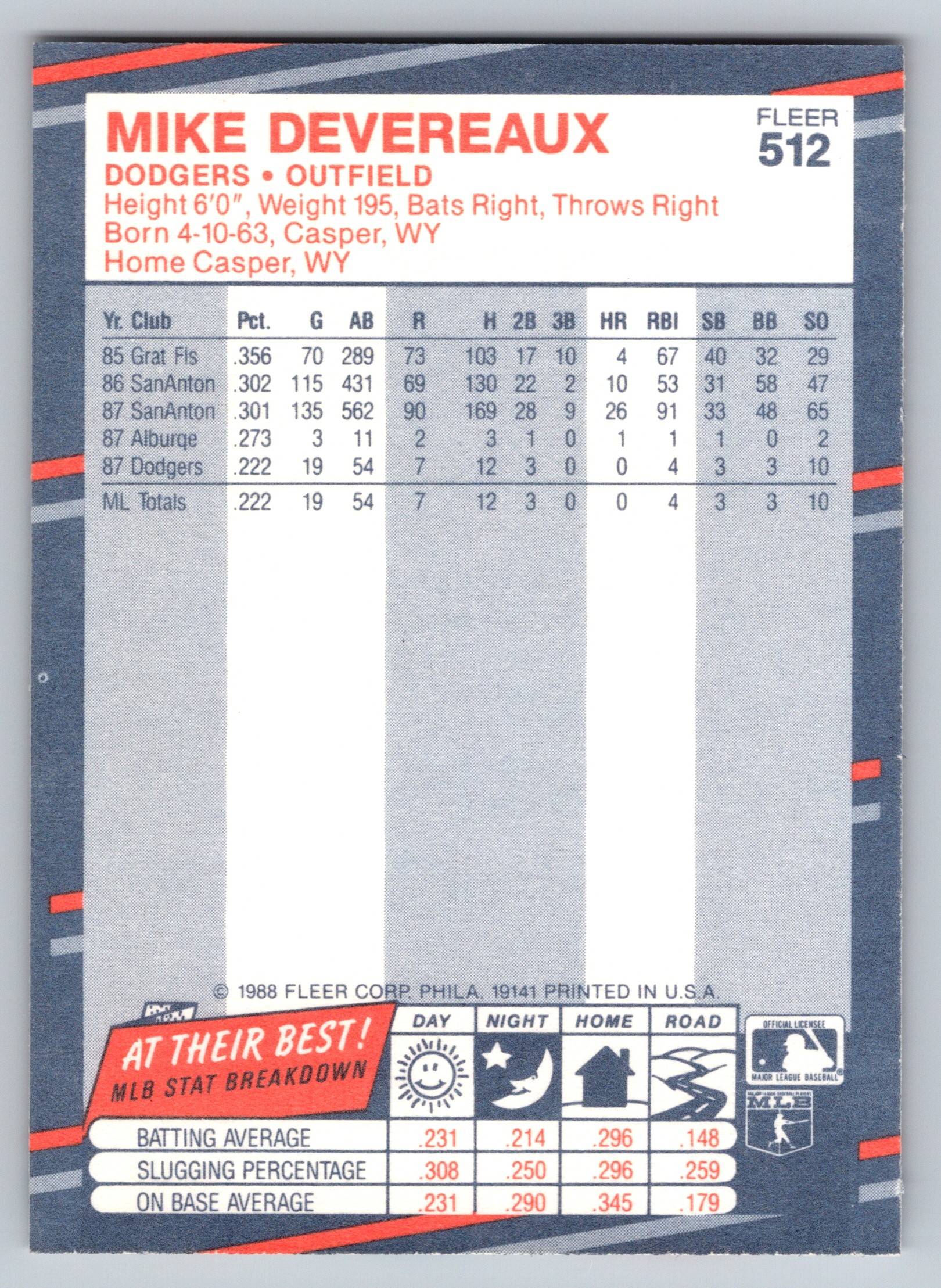 - 1988 Fleer – Mike Devereaux – Rookie Card