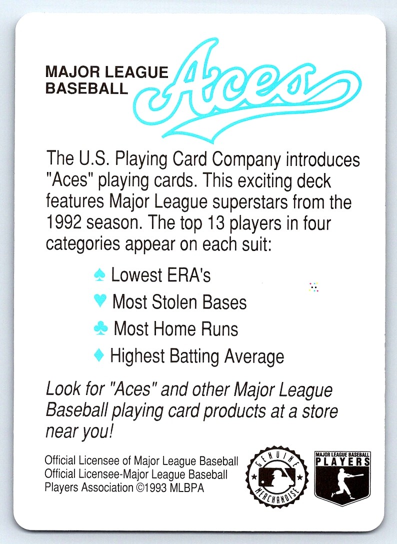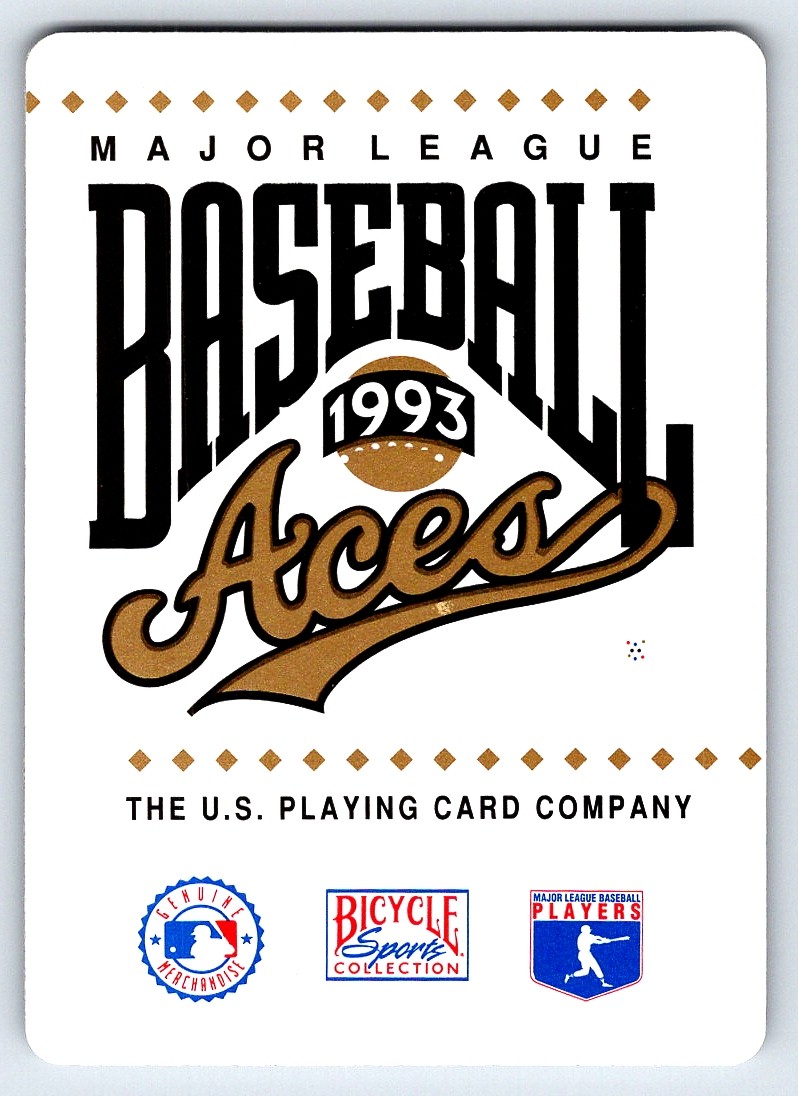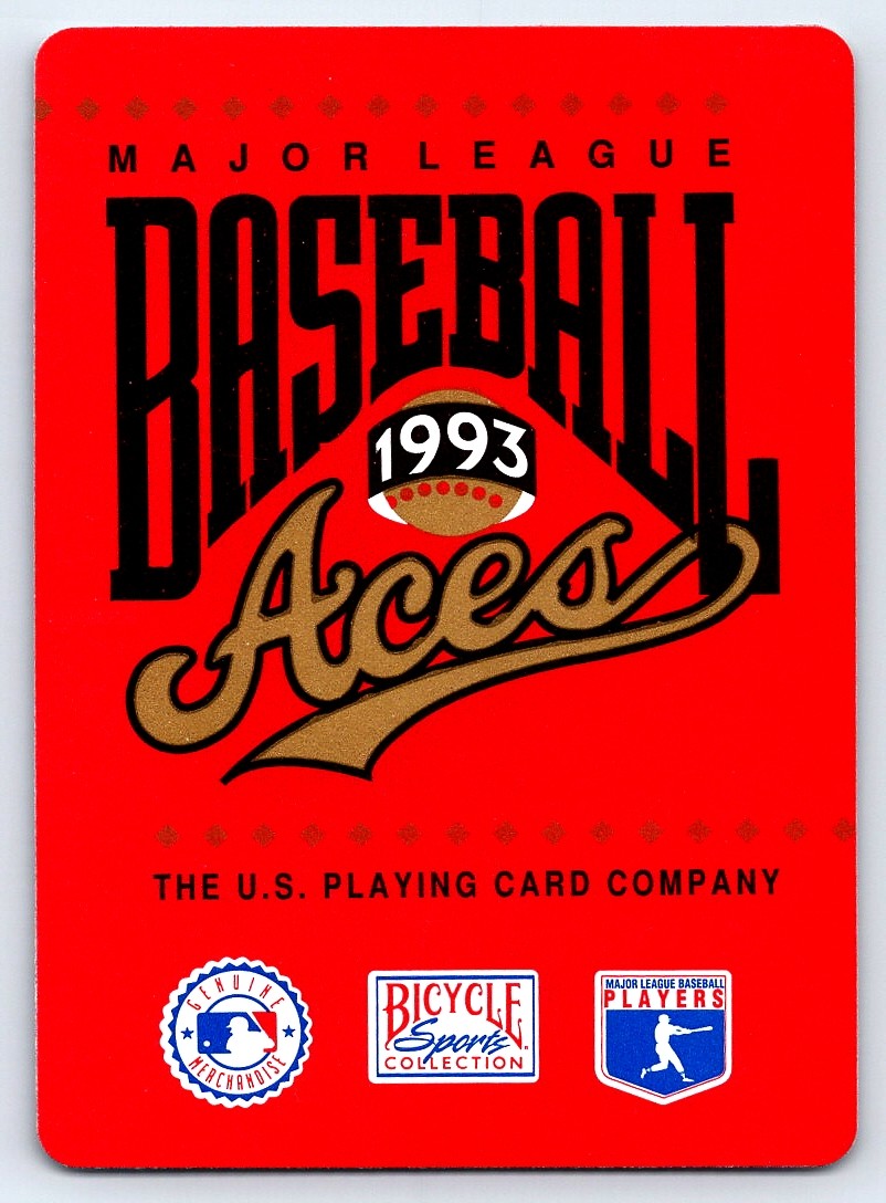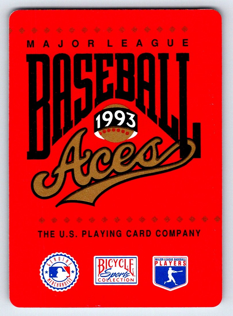 The 1993 U.S. Playing Cards, Major League Baseball Aces set consist of 53 standard size (2 1/2″ x 3 1/2″) cards. The “Bicycle” brand deck of baseball cards are made by the