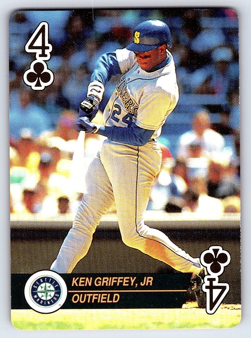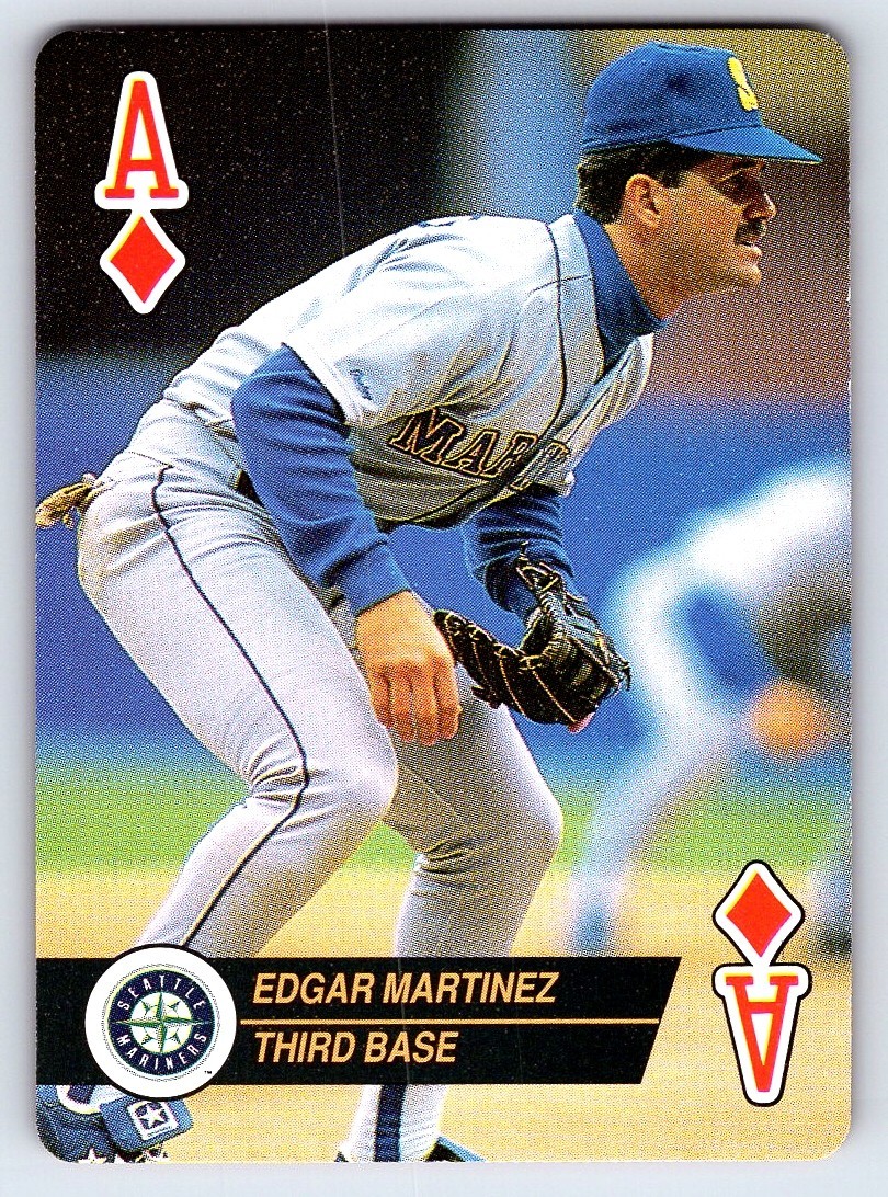 The 1993 Bicycle set of Baseball Aces is hard to find information on, but not a rare set by any imagination. There are a few checklists here and there, but not much information on the origins of the set. Don’t worry if you are confused about the order of the cards in the images, they are not in order of league. Description by KeyMan Collectibles:
